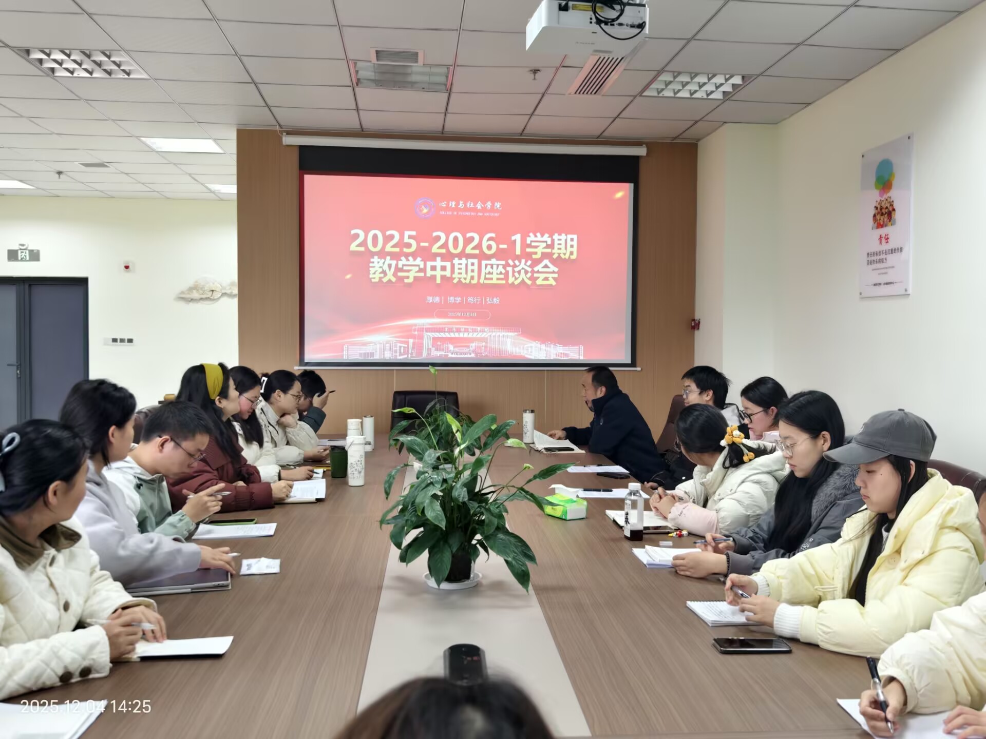 为深入贯彻“OBE”教育理念,切实提升本科教育教学质量,及时回应学生关切,2025年12月4日,心理与社会学院在学院会议室组织召开秋季学期期中教学师生座谈会。学院专业负责人、教研室主任、教务办公室负责人,以及各班学习委员和学生代表共同参会,会议由教务办公室负责人米雪霞老师主持。