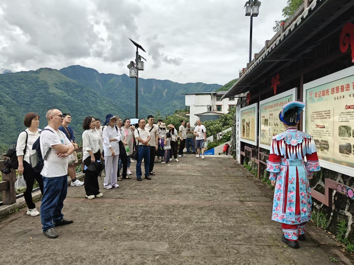 上午,党员教师沿着石椅村村史馆的时光长廊,系统梳理这座羌族村落的振兴脉络。从传统农耕到文旅融合,从基础设施落后到“全国乡村治理示范村”,展馆内的一组组数据、一张张笑脸,生动诠释了“党建引领+政策赋能+群众参与”的乡村振兴模式。“基层党建创新”展区的“村党支部通过‘党员示范田’‘结对帮扶’等机制,把组织优势转化为发展动能,这对学院优化‘党建+专业’融合模式很有启发。老师们边看边议,表示要将乡村治理经验融入社会工作教学案例,培养更具实践能力的应用型人才,更好地发挥专业优势,助力区域经济社会发展。