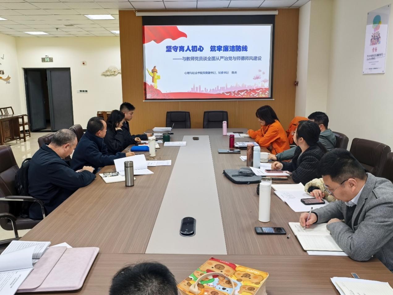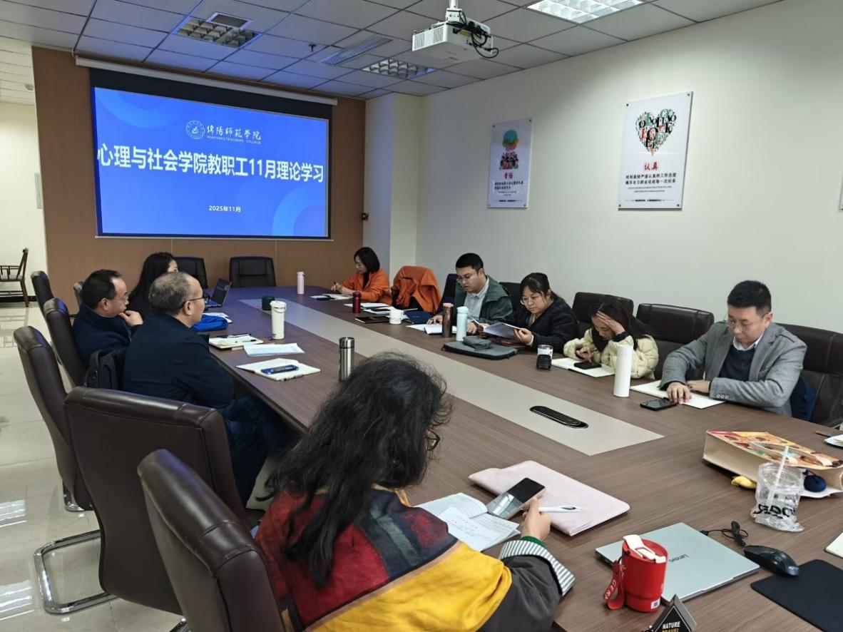 2025 年 11 月 6 日下午,心理与社会学院召开 11 月教职工理论学习会,专题开展党风廉政建设、师德师风建设和平安校园建设的政策宣讲和学习研讨,并部署近期相关重点工作。