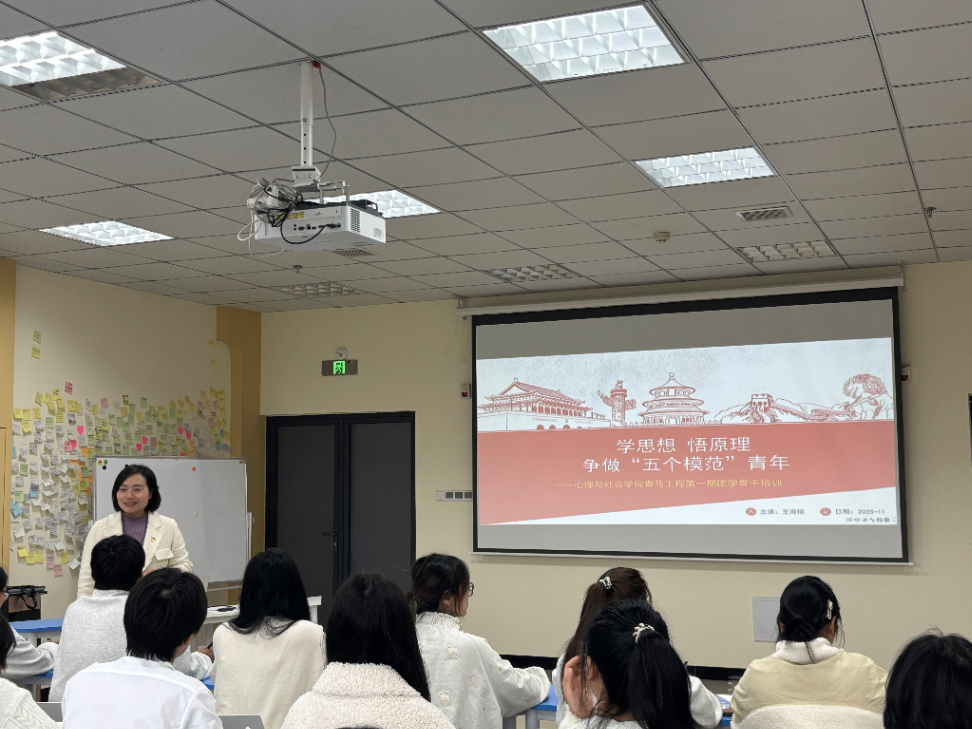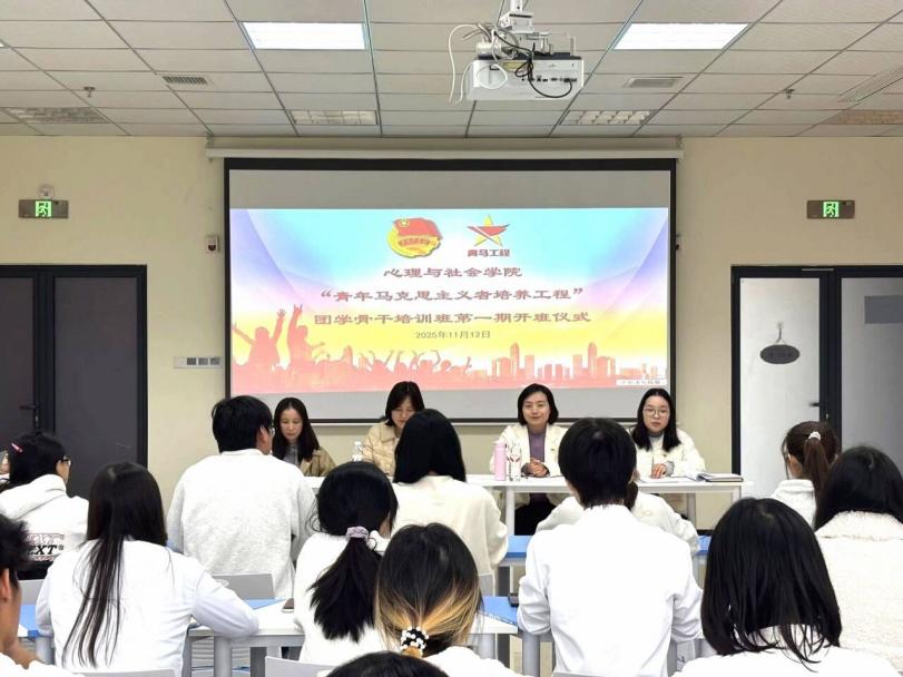 为确保马克思主义理论代代相传,为党培养忠实可靠的青年政治骨干,2025年11月12日心理与社会学院于学生活动中心303顺利举行“青年马克思主义者培养工程”团学骨干培训班开班仪式。本次仪式由学院分团委书记吴小英主持。学院党委书记王海榕,党委副书记兼纪委书记陈奕,辅导员李小菊以及青马班40名学员共同参与本次活动。