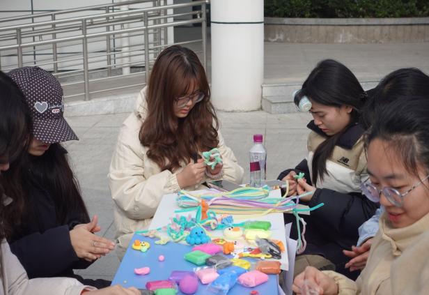 “心灵手巧”环节中,同学们用扭扭棒、彩泥制作解压球、情绪瓶等手工艺品,大家纷纷表示自己不仅收获了满满的成就感,更在创作过程中找到了内心的平静。此外,部分同学还将自己的作品捐赠用于支持后续各类心理活动。