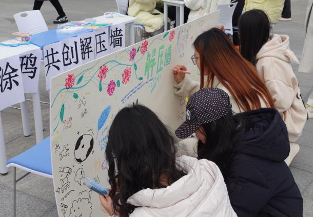 为切实关注大学生心理健康,缓解学业、社交等多重压力,营造积极健康的校园氛围,12月4日,领英心理咨询与治疗团队联合心理与社会学院女工部,于大学生活动中心广场开展“心灵赋能焕活力,思想引领向未来”心理健康主题日活动,为全校学子搭建起释放压力、悦纳自我的心理关怀平台,吸引众多学生踊跃参与。