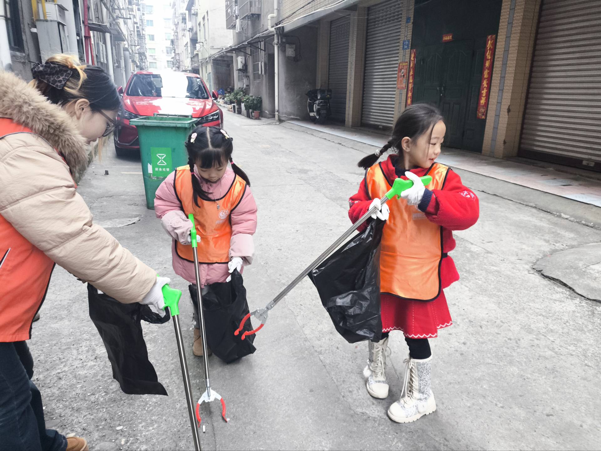 午休后,志愿者与孩子们稍作休整,随即开启下午的社区环保实践环节。下午2时,活动转向环保实践与劳动教育。青马班学员带领孩子们化身“社区美容师”,分工协作清扫道路、捡拾垃圾,并结合实践讲解环保知识,引导小朋友们树立文明观念。通过亲身参与社区治理,学员们将理论联系实际,强化了服务意识和奉献精神,锤炼了扎实的实践能力。