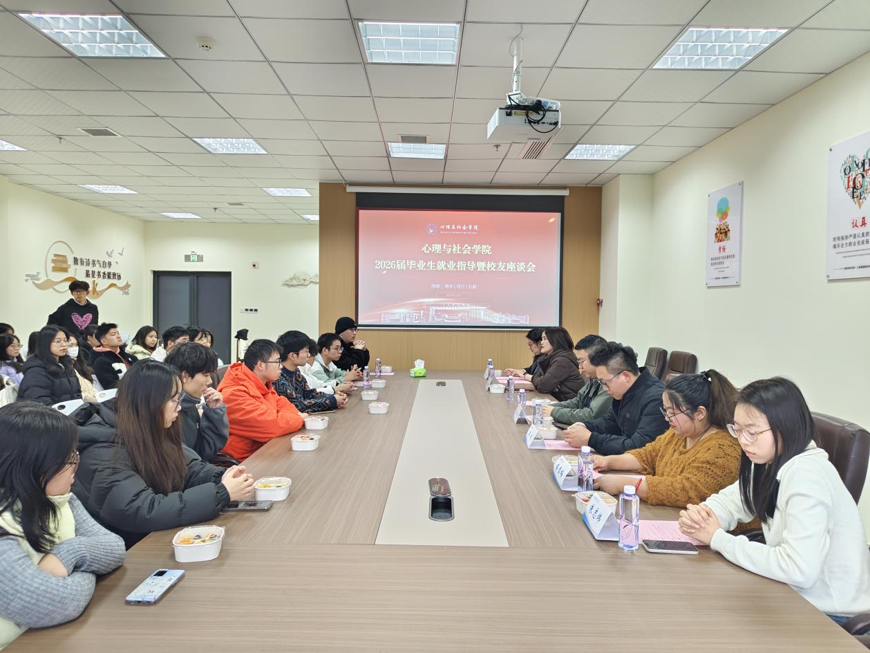 为帮助2026届毕业生明晰就业方向、积累职场经验,搭建毕业生与校友间的沟通桥梁,12月31日下午,心理与社会学院2026届毕业生就业指导暨校友座谈会在304会议室顺利举行。学院班子成员、教师代表、2026届毕业班辅导员、2022级毕业生代表、2023级毕业生代表及优秀校友代表参加了此次会议。