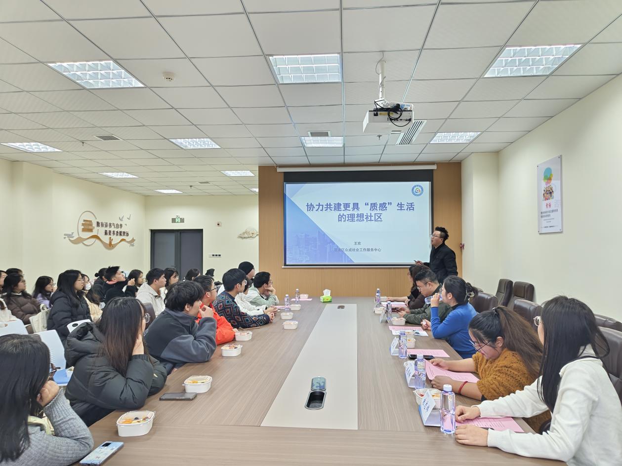 校友分享环节成为本次会议的亮点。三位校友结合自身职业发展轨迹,分别从不同行业视角分享了宝贵经验。王欢聚焦“协力共建更具‘生活’的理想社区”,提出有温度、有烟火气的社区需众人共建,呼吁大家主动拉近邻里距离、守护社区环境、传递互助精神。其分享贴合实际,引发现场广泛共鸣;李雪梅则通过趣味游戏结合一线工作经历,讲述了在社区服务、公益组织等平台的从业感悟,鼓励毕业生将专业知识与社会需求相结合,在服务社会中实现个人价值;朱志炜从坚守初心、保持学习、拥抱挑战、关注自我和相信付出终有回报5个方面给学弟学妹们寄语,在互动交流环节,毕业生们踊跃提问,围绕“跨行业就业如何提升竞争力”“职场新人如何快速适应工作节奏”“不同就业方向的备考与实习准备”等问题与校友、老师展开深入交流。三位校友耐心解答每一个疑问,结合自身经历给出具体建议,现场氛围热烈融洽。
