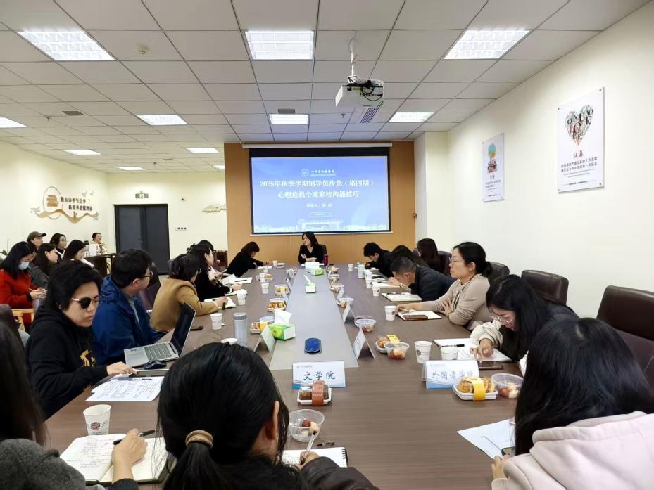 为提升辅导员家校沟通心理胜任力,深化“学校-家庭”协同育人格局,2025年11月7日,成功举办了辅导员心理沙龙活动,活动以“家校沟通技巧”为主题,心理与社会学院陈奕副书记担任主讲人,各二级学院专兼职辅导员共30余人参与。
