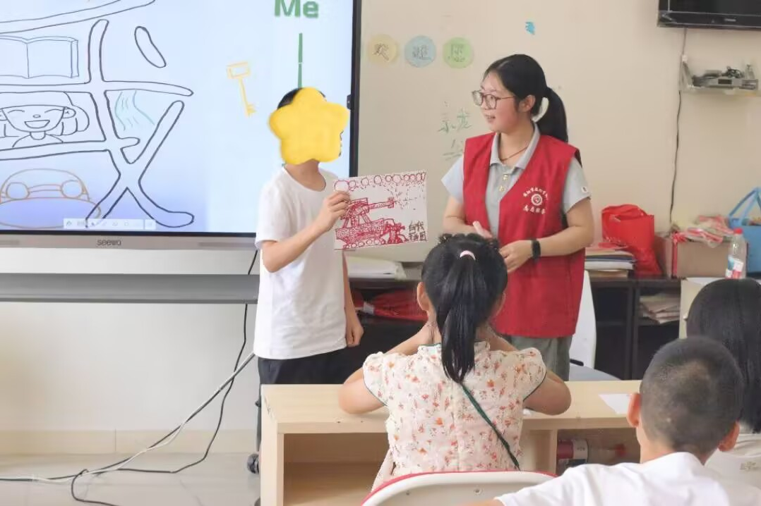 上午9点,教室聚满了期待的小朋友,活动正式启动。一句句“我是云朵”“叫我小苹果”的亲切自我介绍,瞬间拉近了与孩子们的距离。紧接着,玉米老师与龙龙老师带领的“桃花朵朵开”破冰游戏点燃全场,孩子们全员投入,初见的拘谨悄然消散,信任在欢笑中滋长,这份活力也感染了在场的社区工作人员与志愿者。