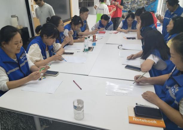 针对网格员长期高压工作状态,团队设计垃圾分类主题游戏,通过分组归类彩色卡片,让压力随笑声消解。自由绘画环节中,一幅《守护者》画作引发共鸣:“漩涡是纠纷,中心的光是老人说‘谢谢’的时刻”。在阿尔法脑波音乐陪伴下,专业引导的深度冥想与肌肉放松训练,让网格员掌握了实用情绪管理方法。